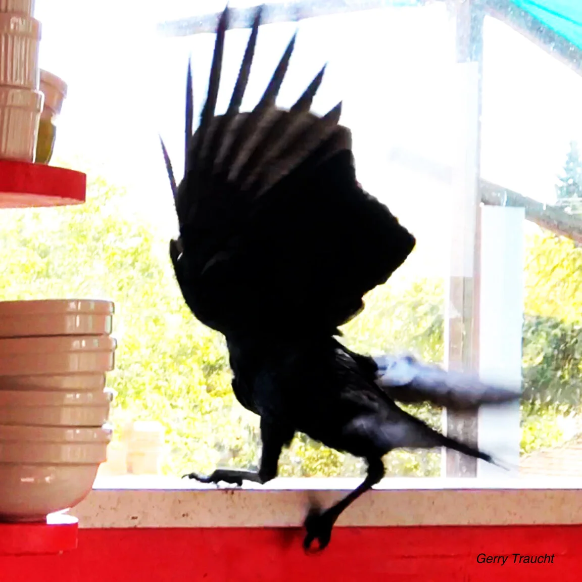 Crashing empty hemp bottles and a storm of wooden duck souvenirs from Bali fly from a windowsill in series of waves of crescendoing noise into a metal sink. My crow neighbor named Hello, who has become a close friend, transforms our kitchen into a thriller with mystery characters and action, all without breaking anything.